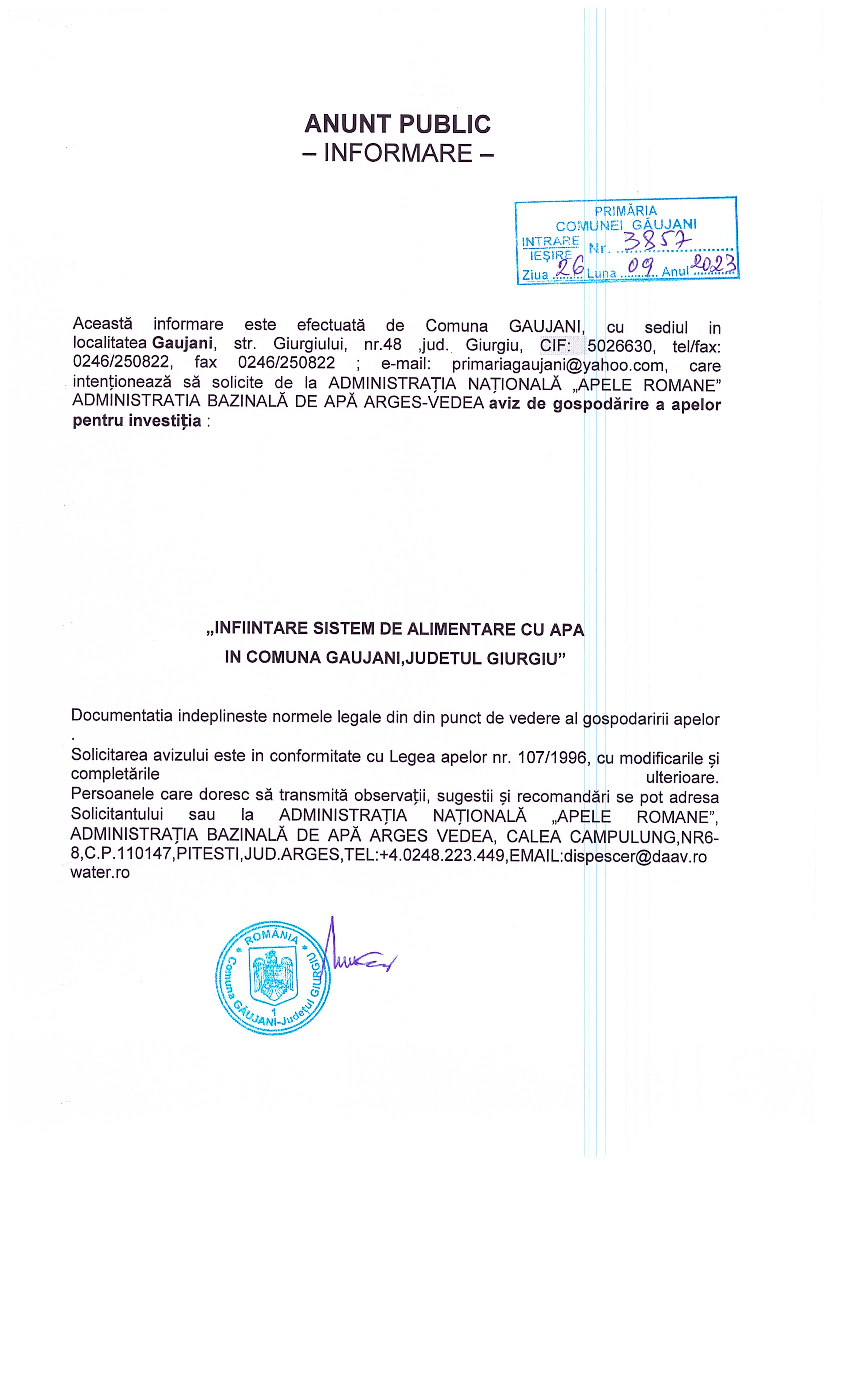 Anunt public - INFORMARE